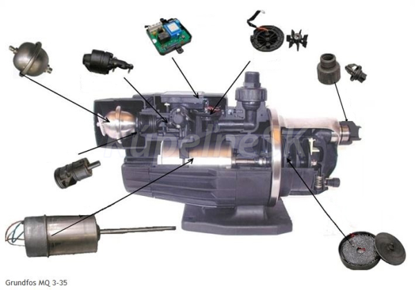 Grundfos, Malá nerezová domáca vodáreň MQ – 4 nízka hlučnosť, motor na 23 GRMQ3. Kompaktné čerpadlo MQ určený pre zásobovanie a zvyšovanie . Automatická domáca vodáreň MQ, Grundfos MQ – 4 Čerpacia stanica MQ je kompaktná jednotka, ktorá obsahuje čerpadlo, motor, membránovú tlakovú .